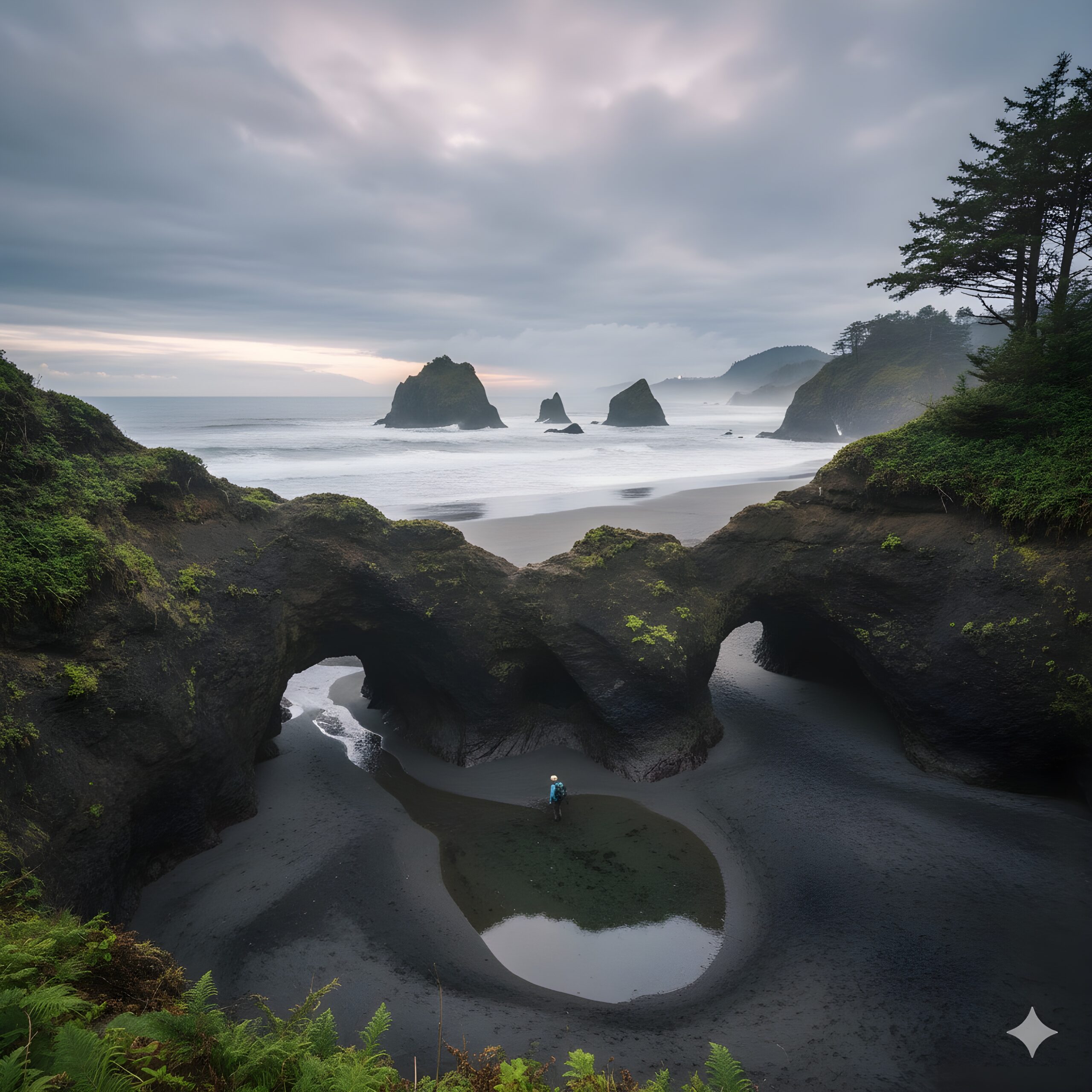 Once you’ve started from the Cape Falcon Trailhead, you’ll travel through a forested ridge located above Short Sand Creek. The forest of Hemlock and Sitka spruce is majestic and dances to the slight breezes coming off the coastline. As you continue, the noise of the highway slowly fades away into a tranquil sound of birds bristling branches.